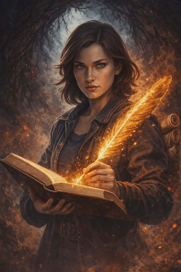 As Scrib-Or, she wields the Mighty Quill, writing truth into permanence. Her scrolls seal darkness, protect others, and preserve what evil tries to erase or rewrite. Once written, her words cannot be corrupted.